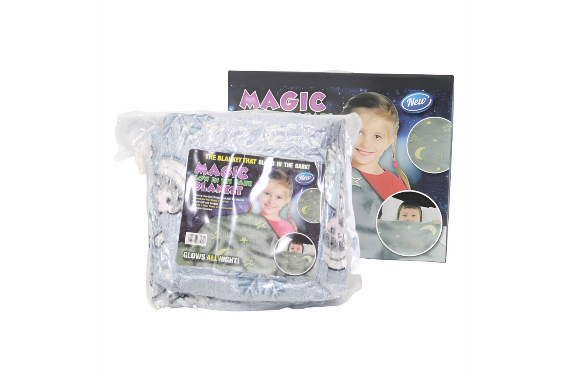 All kids need a blanket, so why not get them a glow all night long, funtastic blanket! The Magic Glow In The Dark Snowy Boy Blanket is designed with small boy inspired patterns that glow in the dark on the comfiest, snuggliest, most glowtastic blanket ever! These blankets are so incredibly soft that your kids will want to cuddle it all day and sleep with it every night under the glowing, magical night sky. Just charge it under direct sunlight or bright lights then enjoy the glowing fun all night long! The Magic Glow In The Dark Snowy Boy Blanket is great for camping, car trips, sleepovers or playtime and it makes the perfect gift! The Magic Glow In The Dark Snowy Boy Blanket brings the fun everywhere it goes, because everything's better when it glows. Designed with glowtastic winter images.