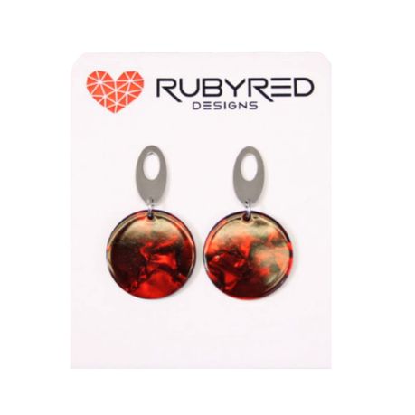 Ruby Red Designs Acrylic Pearlescent Round Drop Earrings, Stainless Steel Oval Posts - Red