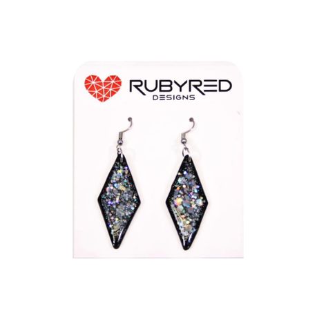Ruby Red Designs Glitter Slim Diamond Earrings on French Hooks - Abalone Grey