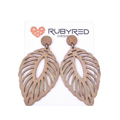 Ruby Red Designs Wood Earrings - Natural Brown Leaf Drop Earrings